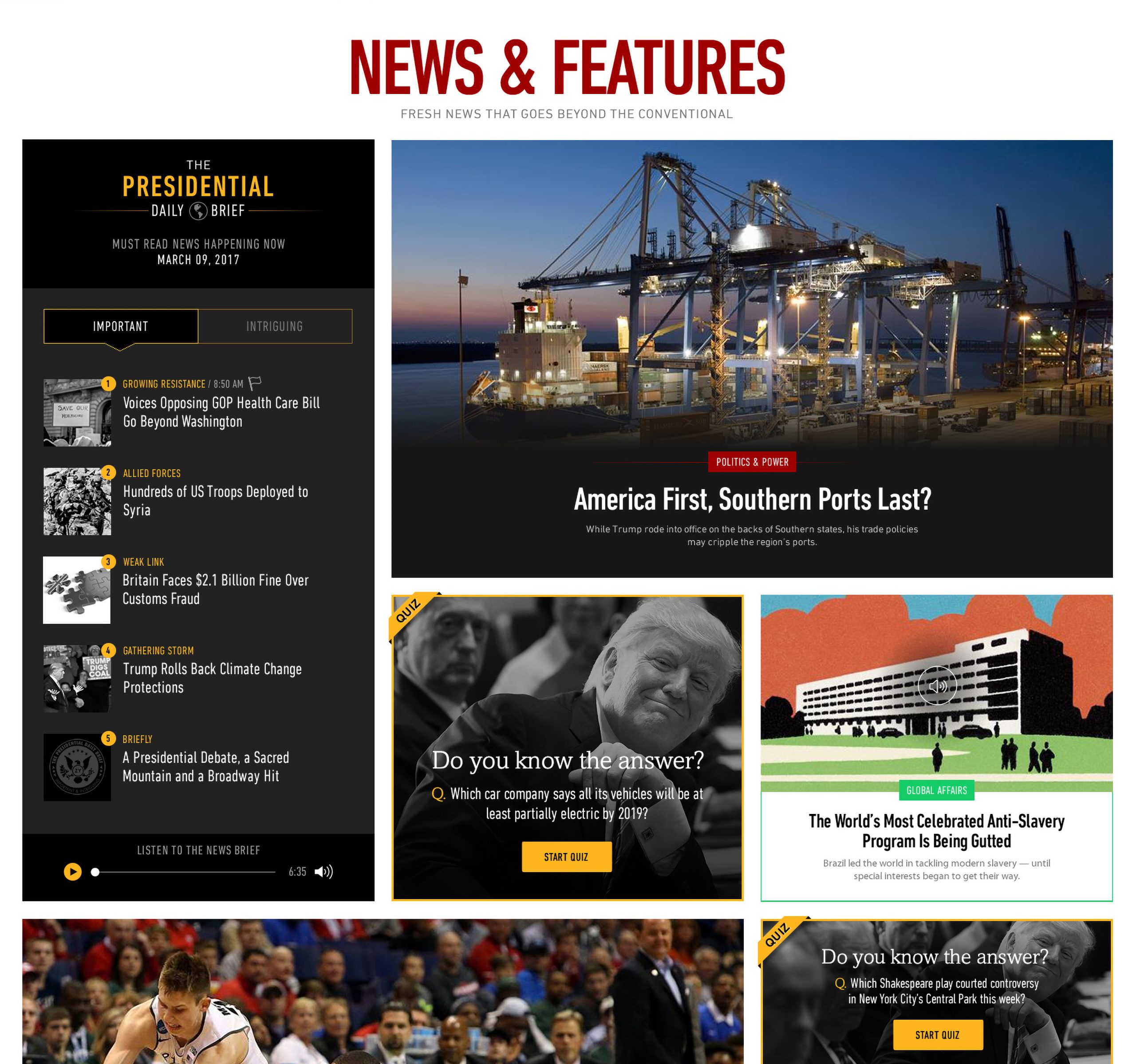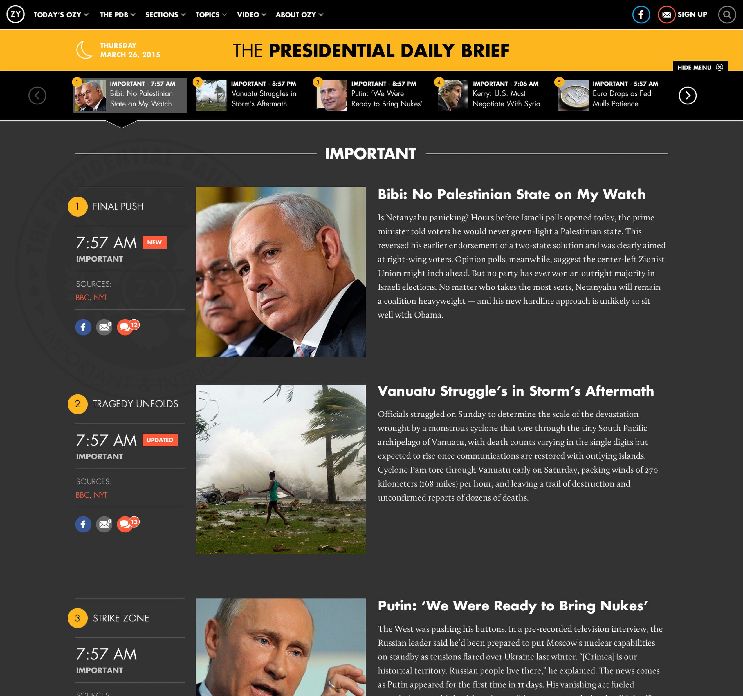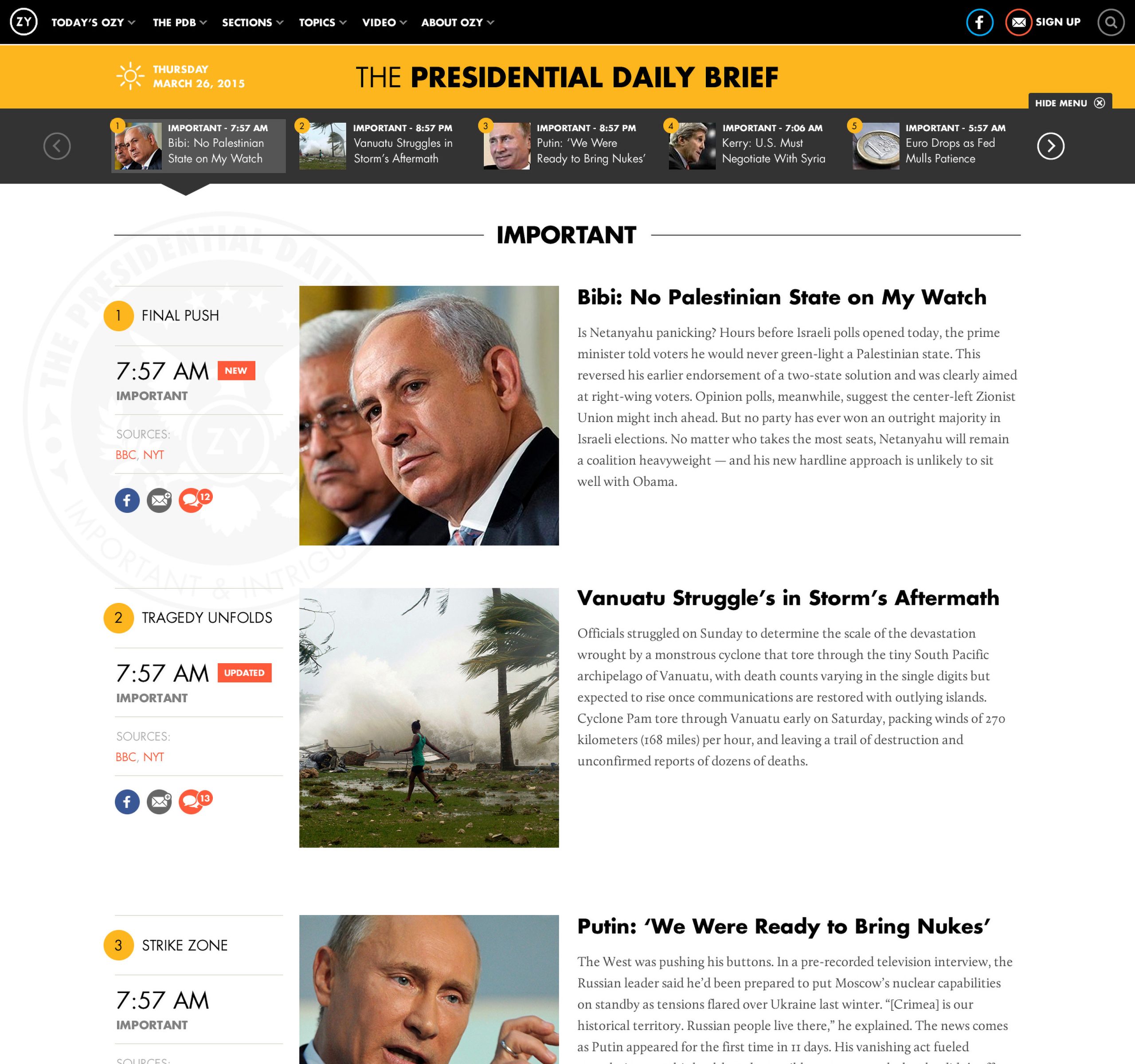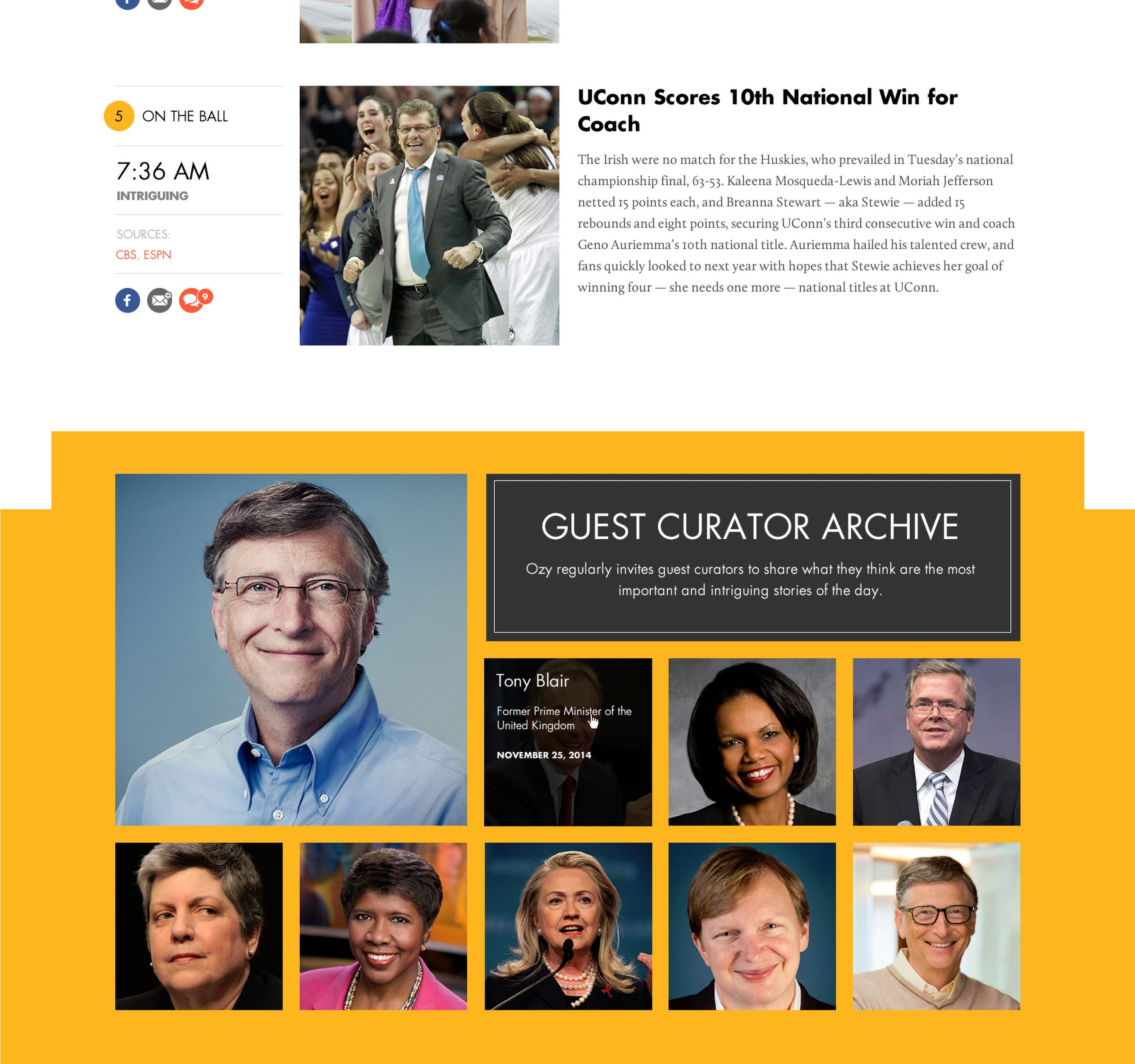 The cornerstone of all the content on OZY was based around a number of key section pages. It was critical the importance of these sections were appropriately highlighted within the designs.